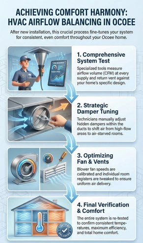 "In our experience of balancing systems in Ocoee, we've found that 90% of post-installation comfort complaints trace back to damper settings that were never adjusted from the builder's original configuration—a 15-minute calibration that transforms how the entire home feels."
